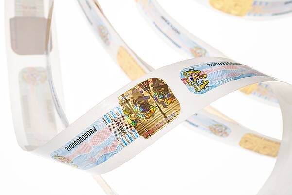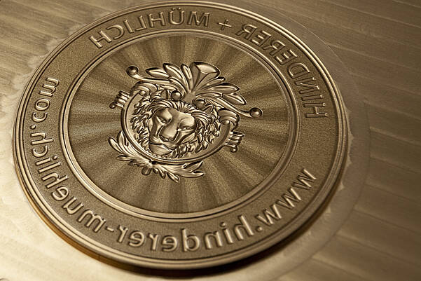 pressure. A heated stamp activates the visually effective layer of the foil and bonds it permanently to the surface. This creates tactile relief structures, brilliant gloss and metallic effects, and diffractive elements.